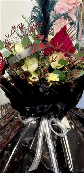 Our boxed bouquets are presented in a bouquet box complete with water for display convenience.