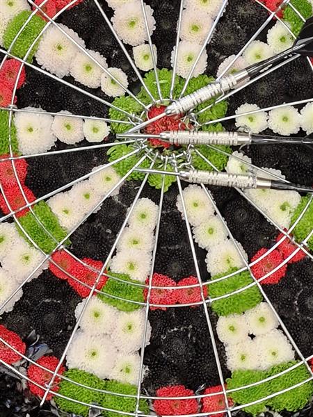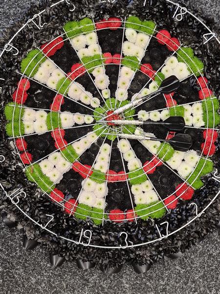 Perfect funeral tribute for the darts enthusiast complete with real set of darts