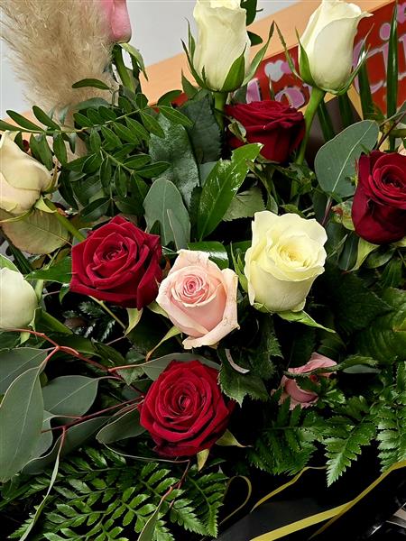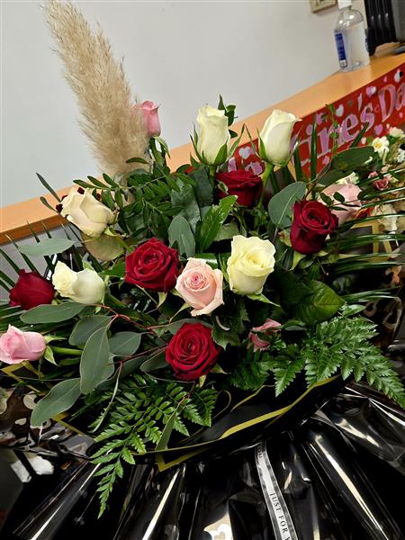 Our Deluxe Rose bouquet is made using the freshest, hand-selected roses mixed with gorgeous foliage to create something truly special.