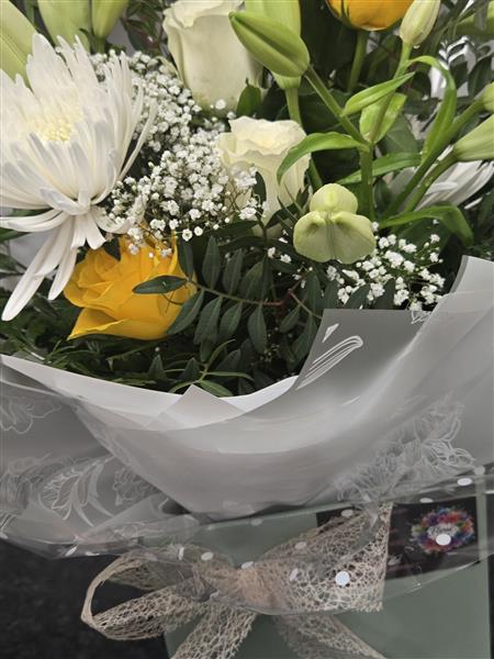 Our boxed bouquets are presented in a bouquet box complete with water for display convenience.