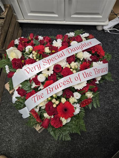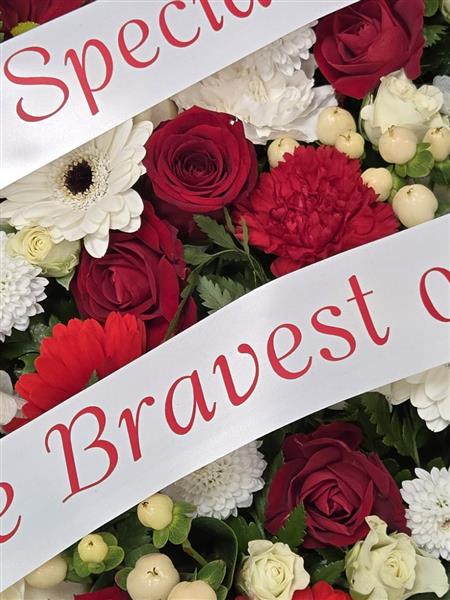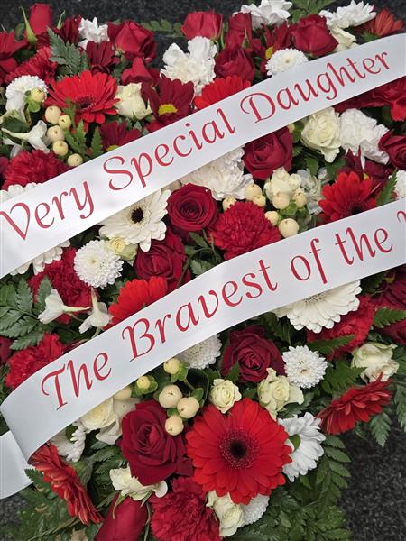 A graceful tribute designed with a mix of seasonal flowers in a loose style and colour palette of your choice.
