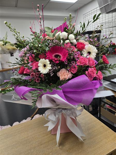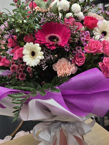 Our Perfect Pink florist choice bouquet is made using the professional opinion of our instore florist to ensure the best possible looking presentation, mixing a range of fresh flowers with gorgeous foliage to create something truly special.