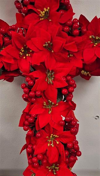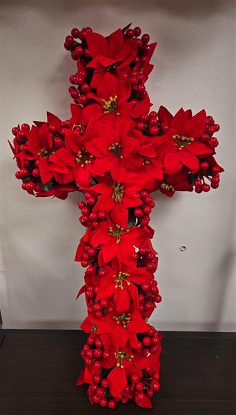 2ft Poinsettia Cross - made using beautiful quality artificial flowers and berries